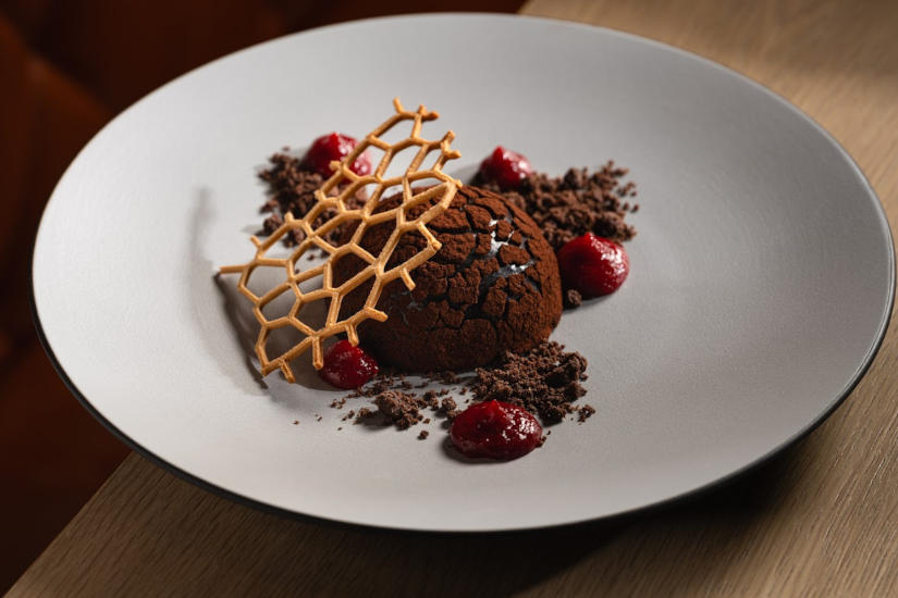 A Spago Budapest Valentin-napi desszertje a fehér csokoládé, vérnarancs, sáfrány, étcsokoládé és sós karamell rétegzett kombinációjára épül. Az eltérő textúrák és ízjegyek együttesen adják meg azt a komplexitást, amely a fine dining desszertek sajátja, és méltó lezárása egy ünnepi vacsorának.