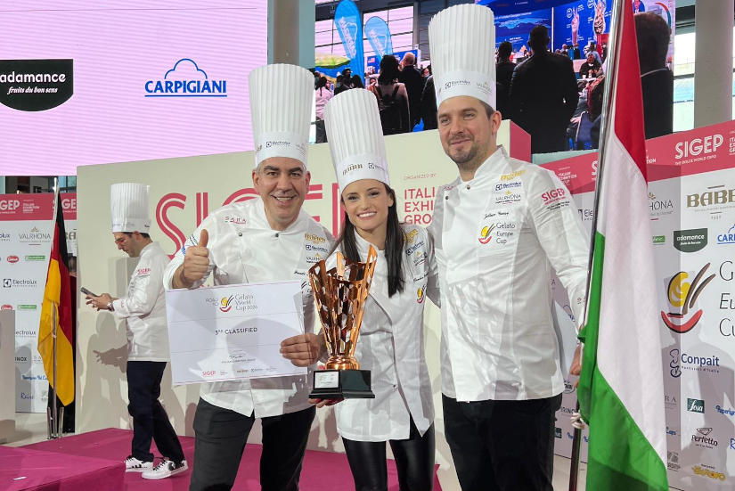 A Somogyi Renáta, Gaborecz István, Fodor Sándor, Gácsi Zoltán, Füredi Krisztián alkotta magyar csapat Európa-bajnoki bronzérme után újabb dicsőséget aratott az olaszországi Riminiben megrendezett 10. jubileumi Gelato World Cupon. A Magyar Cukrász Ipartestület tájékoztatta az MTI-t, hogy a csapat a világbajnokságon bronzérmet nyert és ezzel újabb elismerést hozott haza hazánknak.