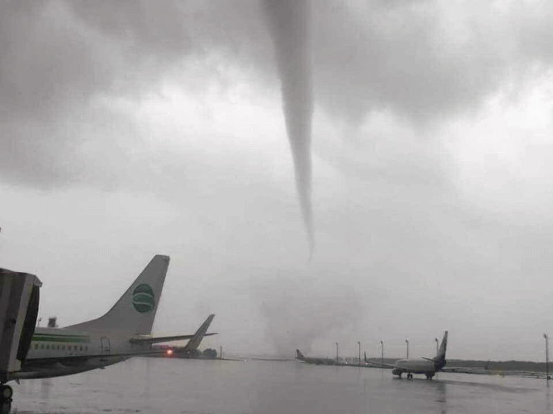 Heves tornádó söpört végig az antalyai nemzetközi reptéren. A hirtelen jött forgószél következtében parkoló és földi kiszolgálás alatt álló repülÅ‘gépek, valamint emberek is megsérültek – Ãrja az Airportal.hu.
