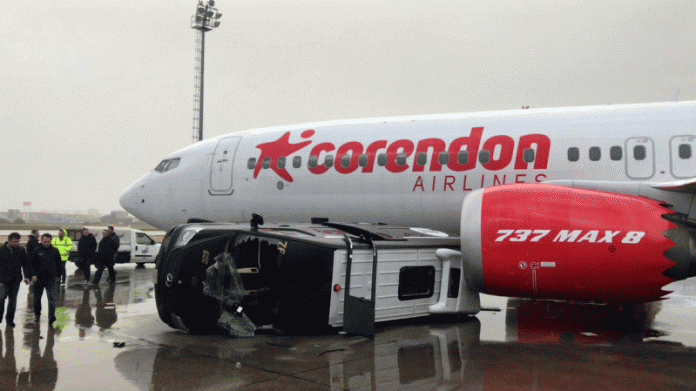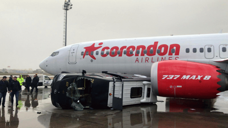 Az Aviation Safety Network adatlapjai szerint a viharban az Onur Air TC-OEB lajstromjelű Airbus A321 orrkúpját és jobb oldalon a géptörzs elsÅ‘ részét törte össze egy felborult, valamint egy másik, a gépnek ütközÅ‘ lépcsÅ‘. A török Corendon TC-MKS lajstromjelű Boeing 737 MAX 8-as egyes számú hajtóművében egy felborult busz okozott károkat. Ezeken kÃvül egy rendÅ‘rségi helikopterben és több földi kiszolgáló eszközben is károk keletkeztek.