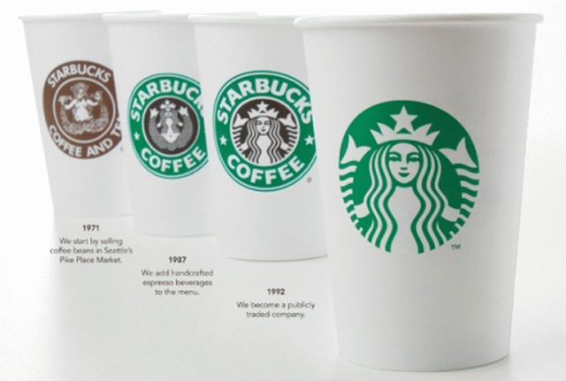 A Starbucks 40 éves fennállásának alkalmából egy új logót terveztek. Az állandó szimbólum egy kétuszonyú szirén (tengeri nimfa), de ezt az évek során különböző változatokban ábrázolták. Az első változat barna volt, a szirén teljes alakban, uszonyaival látszott, félmeztelenül, részletesen kidolgozott rajzzal, amit 1971-től, az indulás évétől használtak. A második verzió, amit 1987-1992 között használtak, nagy váltás volt, zöld-fekete színre cseréltek, a szirén a köldökéig látszódott, de a keblét eltakarta a haja, „szolidabb” lett, a fején megjelent egy korona-szerű fejdísz. ’92-től egészen mostanáig a harmadik verziót használták, mi is ezzel találkozhattunk. Ezen a szirén melle és uszonyai szinte alig látszanak, a rajz sokkal egyszerűbb, letisztultabb. Mindhárom verziónál jelen volt a STARBUCKSCOFFEE felirat a rajz körül, viszont ez a legújabb verziónál eltűnik, a szirén rajzát felnagyítják.