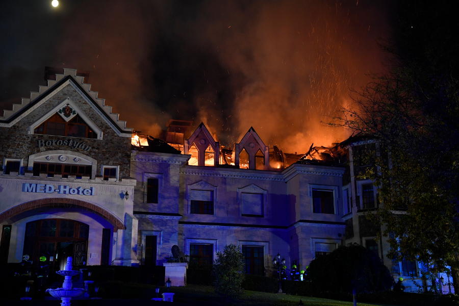 Kigyulladt vasárnap este és teljes terjedelmében ég a Borostyán Med Hotel tetőszerkezete Tamásipusztán – közölte a hajdú-bihari katasztrófavédelmi igazgatóság szóvivője az MTI-vel. Papp-Kunkli Nóra elmondta: az ötös fokozatúra minősített tűzhöz nagy erőkkel vonultak ki debreceni, nyíradonyi és szakolyi tűzoltók, és megkezdték a tűz oltását. A szálloda épületét 85 embernek kellett elhagynia – tette hozzá.