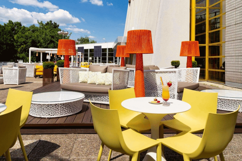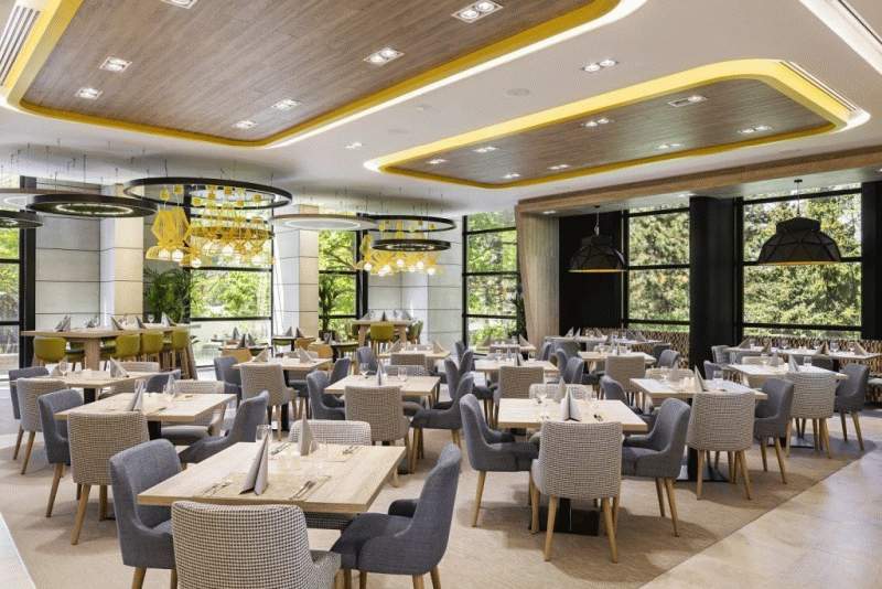 A közösen 500 fő befogadására alkalmas étterem a terasszal kiegészülve a felújítás után egy új, sokoldalú és érdekes helyszínt kapott. A nagy tér dizájnos láncfüggönyökkel könnyen szekcionálható, de az összefüggő hatás megmarad. A hotel vezetése szeretné kihasználni az új terek adta lehetőségeket, így kültéri rendezvények lebonyolításában és élőzenés estekben is gondolkodnak.