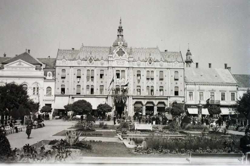 A fotón Deák tér (Piata Libertatii), Pannónia (később Dacia) hotel. Fortepan / Kókány Jenő adományozó