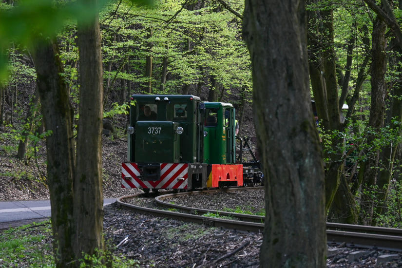 A fotón a felújított C 50-es mozdonyok a részlegesen megújult szobi kisvasút átadásán Szob és Márianosztra között 2024. április 4-én. Máthé Zoltán / MTI